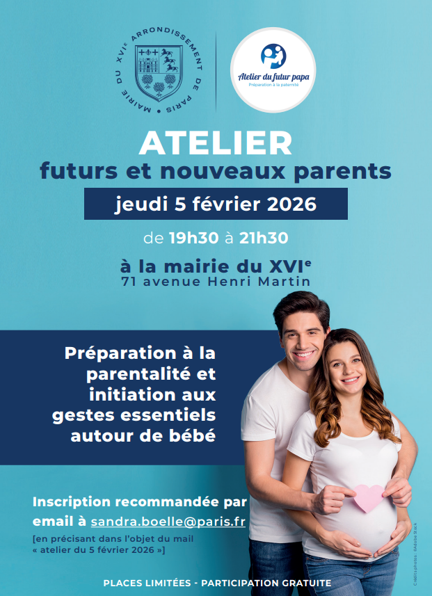 La Mairie du XVIe vous propose, jeudi 5 février de 19h30 à 21h30, un atelier gratuit pour vous aider à préparer la naissance de votre enfant en toute sérénité, dans une ambiance ludique et très sympathique.