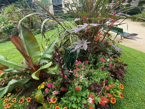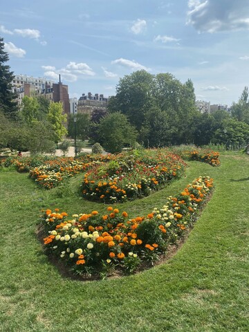 Les jardiniers ont représenté la nature qui domptait la ville au travers du mobilier urbains Haussmannien de la ville de Paris telle que les grilles d’arbres ou encore les corbeilles dites « Tulipes ». Ils ont intégré une flore très spectaculaire telle que le ricin commun, le Dalhia Parc Floral et une multitude de variété de Coléus et bien d’autres plantes tout en incorporant une flore issue du bassin d’Ile de France tels le centaure et la chicoré.