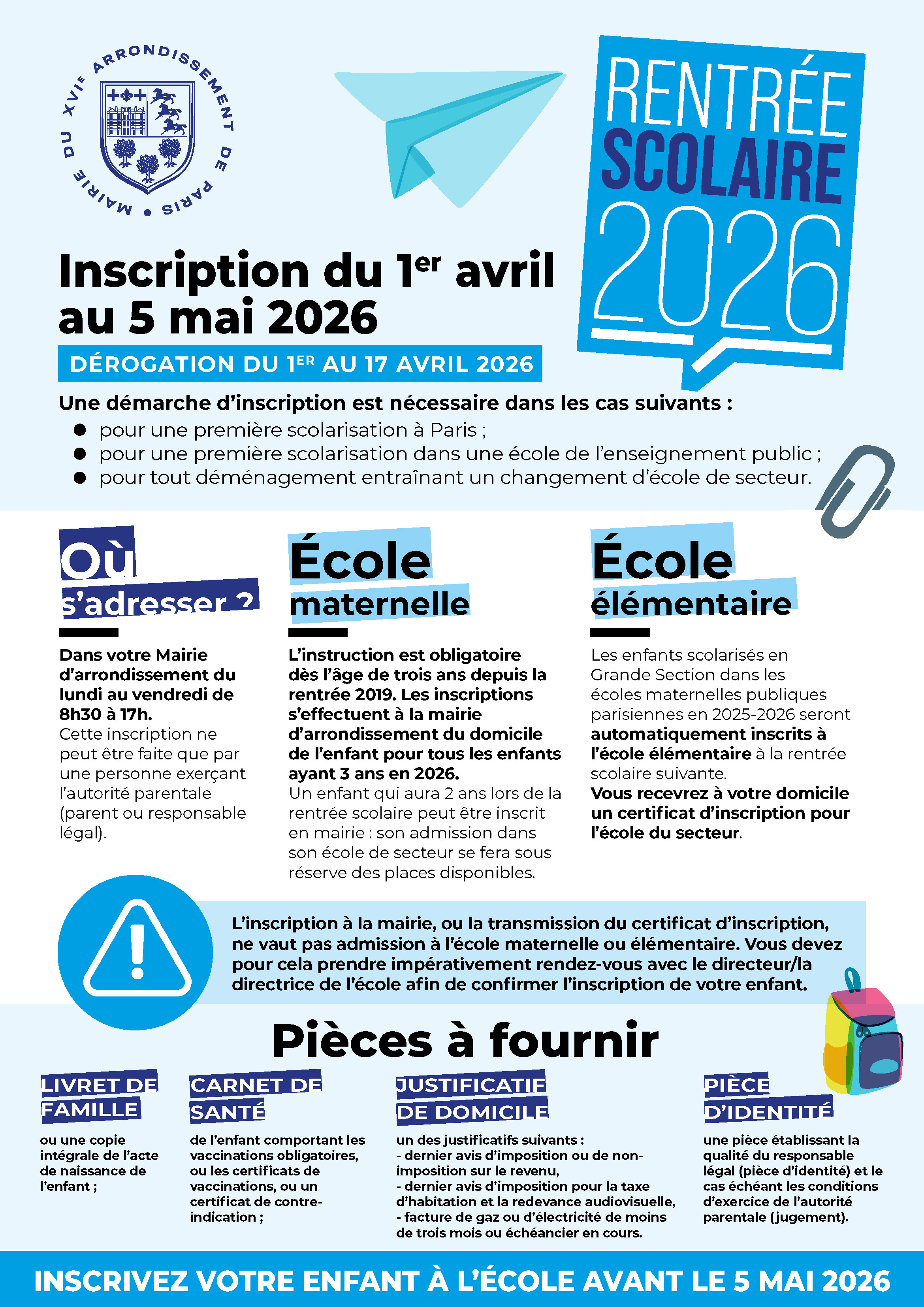 - Inscription à l'école maternelle et élémentaire