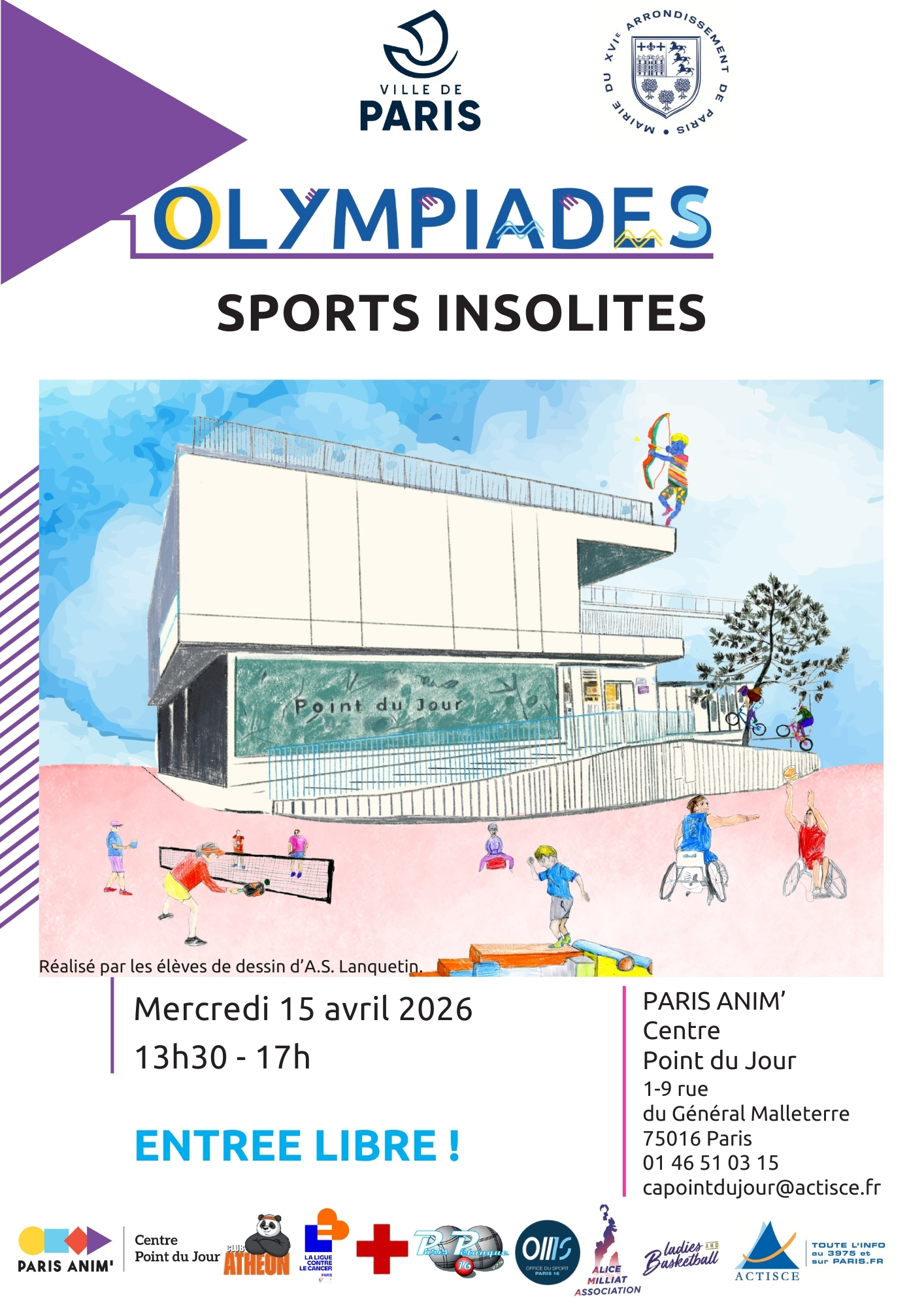 Le centre Anim' du Point du Jour vous invite à découvrir une après-midi placée sous le signe du sport, de la créativité et de la convivialité à l’occasion des Olympiades : Sports insolites !